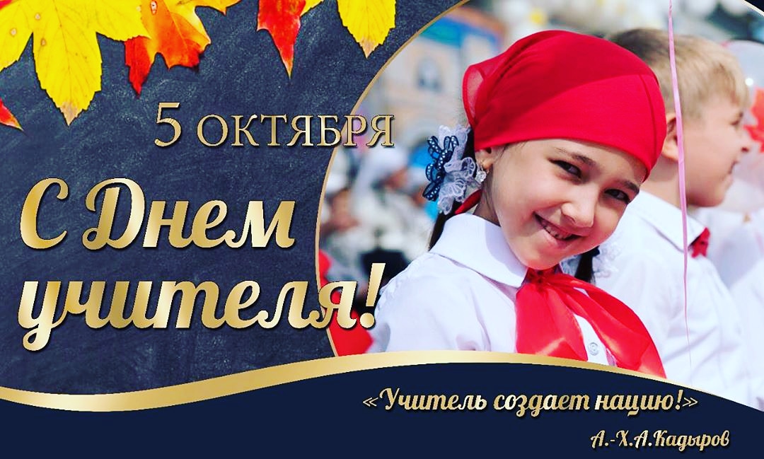 Сегодня, 5 октября, отмечается профессиональный праздник работников сферы образования – День учителя. В Чеченской Республике качественное образование является приоритетным направлением в деятельности руководства. ПЕРВЫЙ ПРЕЗИДЕНТ ЧЕЧЕНСКОЙ РЕСПУБЛИКИ, ГЕРОЙ РОССИИ АХМАТ-ХАДЖИ КАДЫРОВ говорил, что только образованное общество с хорошим интеллектуальным запасом сможет добиться успеха и признания в современном мире. Благодаря неоценимой помощи и поддержке ГЛАВЫ ЧЕЧЕНСКОЙ РЕСПУБЛИКИ, ГЕРОЯ РОССИИ РАМЗАНА АХМАТОВИЧА КАДЫРОВА во всех районах республики функционируют школы, оснащенные современной материально-технической базой. В известной песне ответом на вопрос "С чего начинается Родина?" звучат слова: "С картинки в твоем букваре". Это первая книга, с которой начинается обучение детей грамоте. А с кого начинается школа? Конечно же, с учителя. С человека, обладающего щедростью души, неистощимым интересом к внутреннему миру ребенка, любящего детей, относящегося к ним как к чему-то особенному и исключительному. Каждый учитель – немного волшебник, потому что имеет дело с самым хрупким и драгоценным «материалом» – открытой детской душой. В мире нет ни одной области деятельности человека, где не востребованы знания. В век научно-технического прогресса, развития информационных технологий именно знания определяют социально-экономический потенциал общества и его способность к созидательной деятельности. Каких бы высот ни достигал человек, путь к ним начинается в школе. На протяжении всей своей жизни человек в первую очередь руководствуется знаниями, основа которых была заложена педагогами.