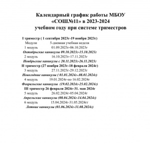 Администрация МБОУ "СОШ №11" г.Грозного уведомляет Вас о преходе с 1 сентября 2023 г. школы на обучение по триместрам.