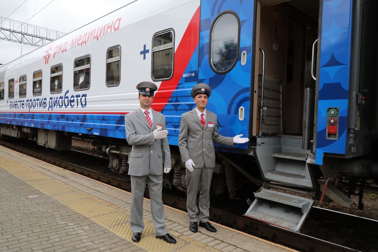 «РЖД-Медицина» 10 сентября запускают Всероссийскую информационно-просветительскую акцию «Поезд здоровья «Вместе против диабета», цель которой – повышение осведомленности граждан о важности профилактических медицинских осмотров, факторах рисков хронических неинфекционных заболеваний, в том числе сахарного диабета, популяризация здорового образа жизни. «В настоящее время по нацпроекту «Здравоохранение» работают 1 324 передвижных медицинских комплекса, где осмотрено порядка 9 млн человек. Кроме того, сейчас пациенты могут пройти обследование не только в передвижных специально оборудованных автомобилях, но и в поездах на железнодорожных станциях и даже на воде, благодаря плавучим поликлиникам. Подобные инициативы, как «Поезд здоровья» делают медицинскую помощь ближе к человеку. Наша совместная задача - напомнить людям, как важно заботиться о своем здоровье, и регулярно проходить диспансеризацию и профилактические медицинские осмотры» - отметила генеральный директор АНО «Национальные приоритеты» София Малявина. Механика акции проста: врачи «РЖД-Медицина» в специально назначенном поезде, оснащенном необходимым медицинским оборудованием, проследует по маршруту «Владивосток – Москва» с остановками в 37 населенных пунктах 30 субъектов Российской Федерации. Всего в рамках акции Поезд здоровья «Вместе против диабета» за 66 дней преодолеет расстояние более чем в 20,4 тыс. километров. «Поезд здоровья – это не только медицинская инициатива, но и настоящий шаг к укреплению здоровья нации. Проект, в первую очередь, направлен на повышение осведомленности людей о мерах профилактики и объединение усилий государственных, частных и общественных организаций, врачей и пациентов в борьбе с сахарным диабетом в Российской Федерации, а также повышение осведомленности населения о хронических заболеваниях, просвещение населения в вопросах профилактики и ЗОЖ» – подчеркнула Начальник Центральной дирекции здравоохранения – филиала ОАО «РЖД» Елена Жидкова. На остановках на железнодорожных вокзалах, а также в пути следования «Поезда здоровья» (в специально отведенных для этого купе) будут проводиться профилактические медицинские осмотры, включающие лабораторные, функциональные исследования и консультации врачей, в том числе узких специальностей. Также будут проводиться мероприятия, направленные на информирование о факторах риска развития и повышение грамотности населения в отношении своего здоровья. Партнеры акции: Совет Федерации Федерального Собрания Российской Федерации, Государственная Дума Федерального Собрания Российской Федерации, Министерство здравоохранения Российской Федерации, Всероссийское общественное движение «Волонтеры-медики», АНО «Национальные приоритеты», НМИЦ эндокринологии Минздрава России и НМИЦ терапии и профилактической медицины Минздрава России.
