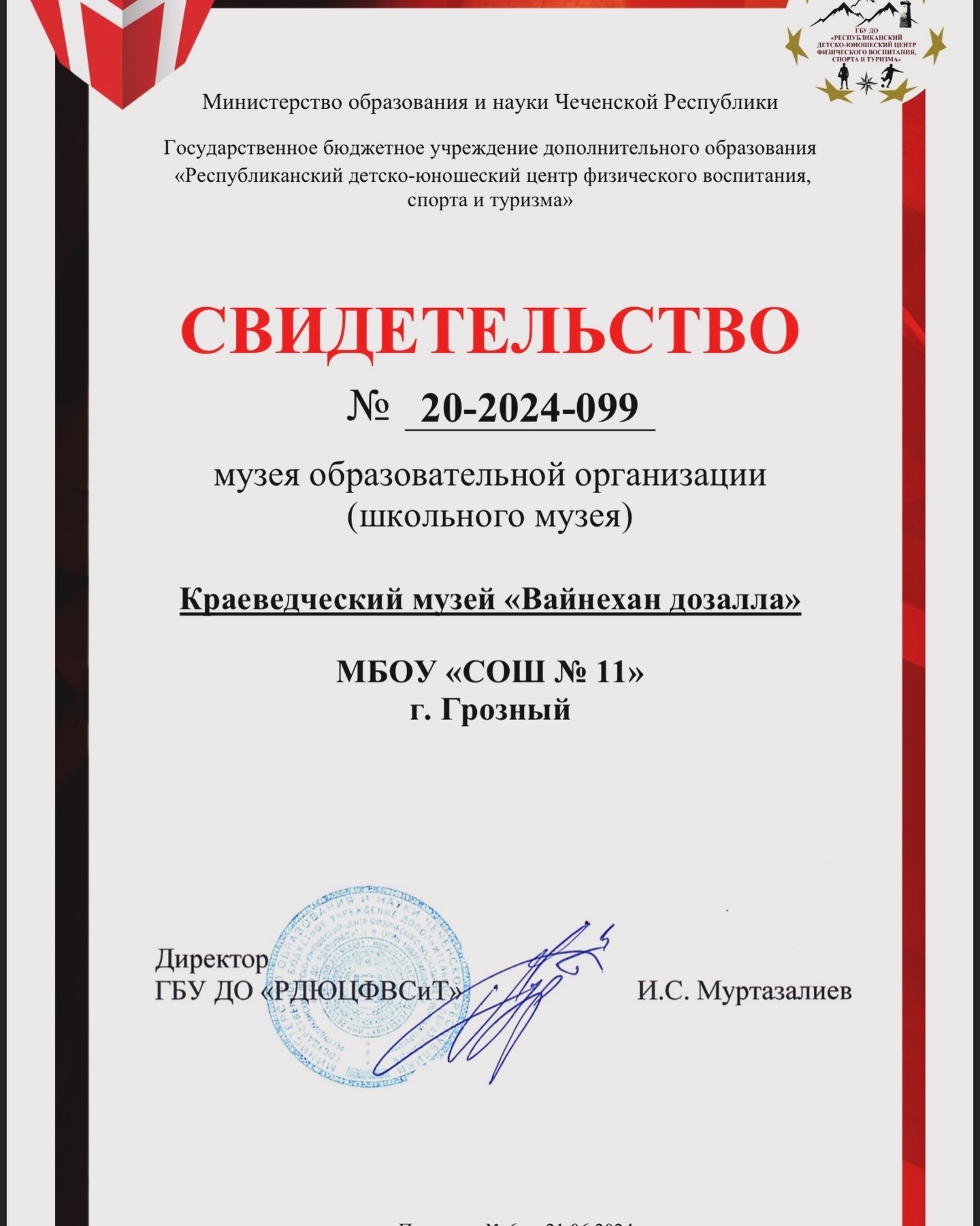 01.08.2024На базе МБОУ «СОШ №11» г.Грозного открыт Краеведческий музей «Вайнехан дозалла».