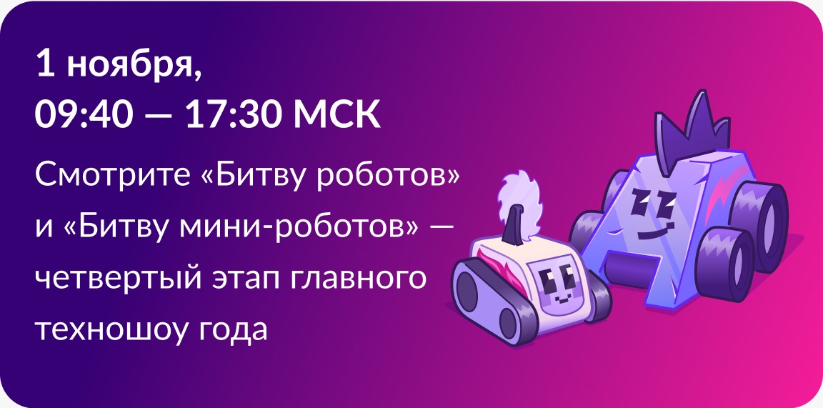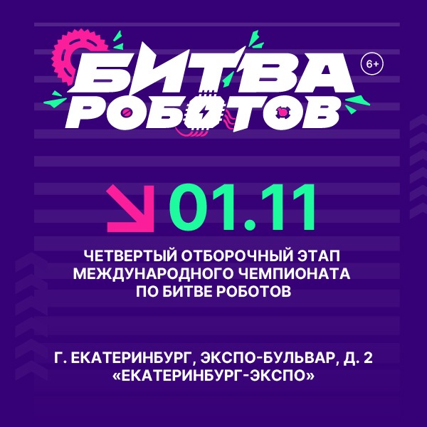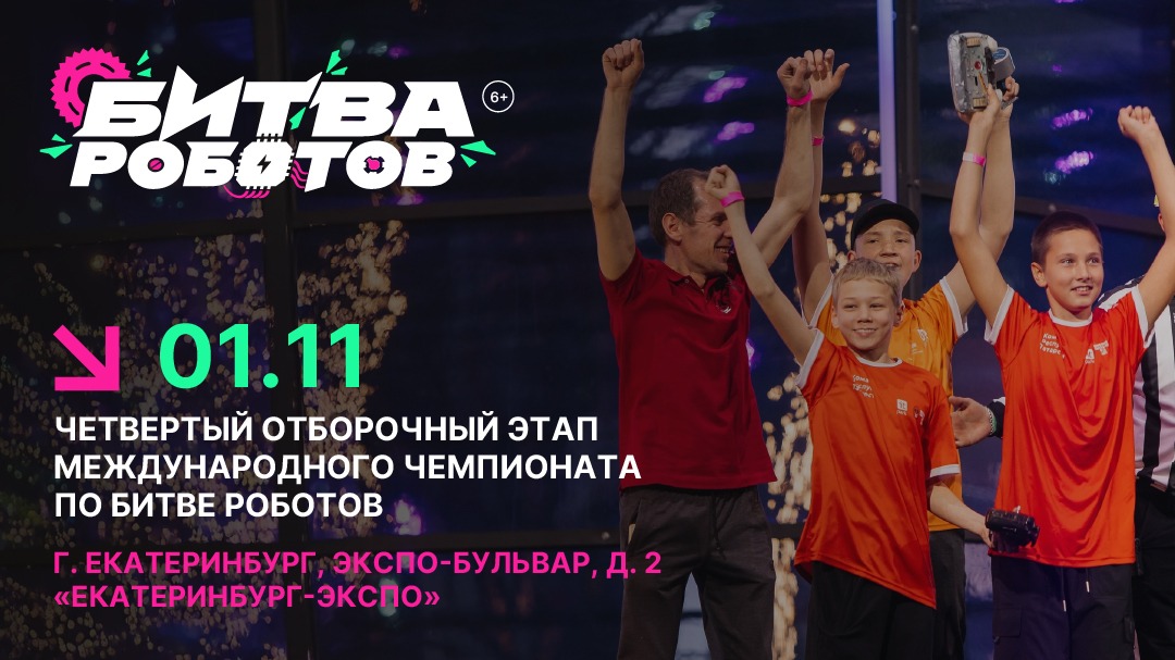 В четвертом отборочном этапе чемпионата сразятся 28 команд из России, Беларуси, Индии и Китая: 16 команд в рамках дисциплины «Битва роботов» в весовой категории до 110 килограмм и 12 команд в рамках дисциплины «Битва мини-роботов» в весовой категории до 1,5 кг. Среди участников — команды МТУСИ, СПбГУТ им. М. А. Бонч-Бруевича, Высшей Школы Нефти, МИСИС, ИТМО, СППУ Петра Великого, ДГТУ, МИРЭА, НГТУ НЭТИ и других ведущих университетов.Мероприятие пройдет 1 ноября 2025 г. с 11:30 до 19:30 (по местному времени) при поддержке Правительства Свердловской области территории Международного выставочного центра «Екатеринбург-ЭКСПО» по адресу: Свердловская область, г. Екатеринбург, ЭКСПО-бульвар, д. 2.