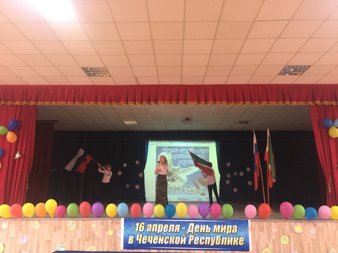 14.04.2018г. в актовом зале школы прошло общешкольное мероприятие, приуроченное ко Дню мира (16 апреля). Организаторами данного мероприятия были ПО «Юные Кадыровцы».