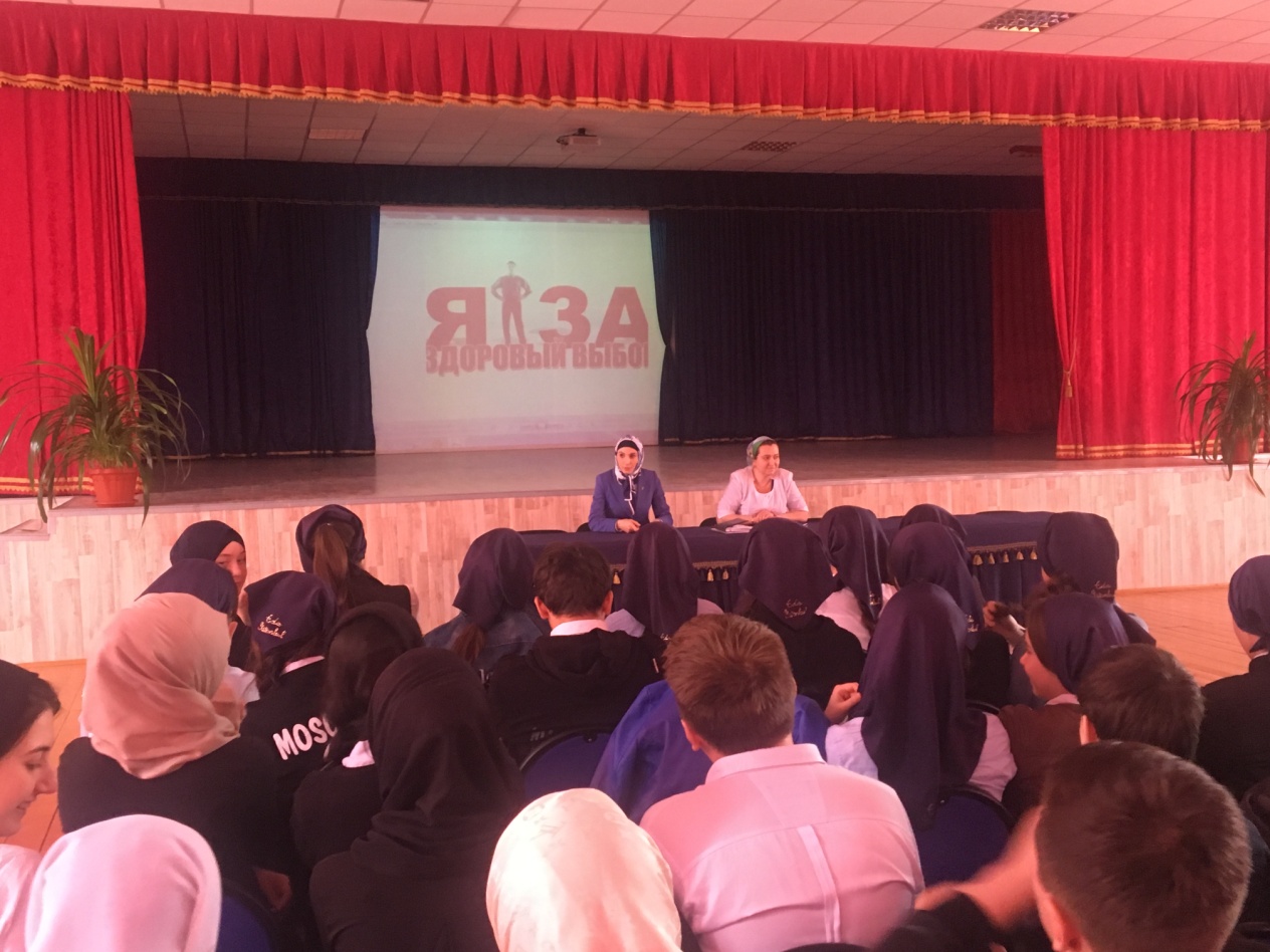 03.04.2018г. в актовом зале школы среди учащихся 9-11-х классов проведена лекция «Я за здоровый образ жизни». Лекцию провела Медицинский работник школы Ясуева З.Р.