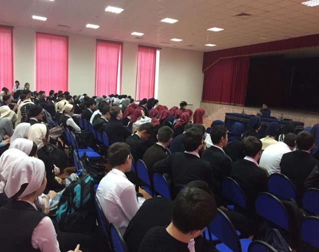 Беседу провели ведущий специалист отдела духовно-нравственного воспитания и развития Департамента по связям с религиозными и общественными организациями Администрации Главы и Правительства Чеченской Республики Дудаев Абдурохман Арбиевич, главный специалист Зауров Магомед Сайханувич.
